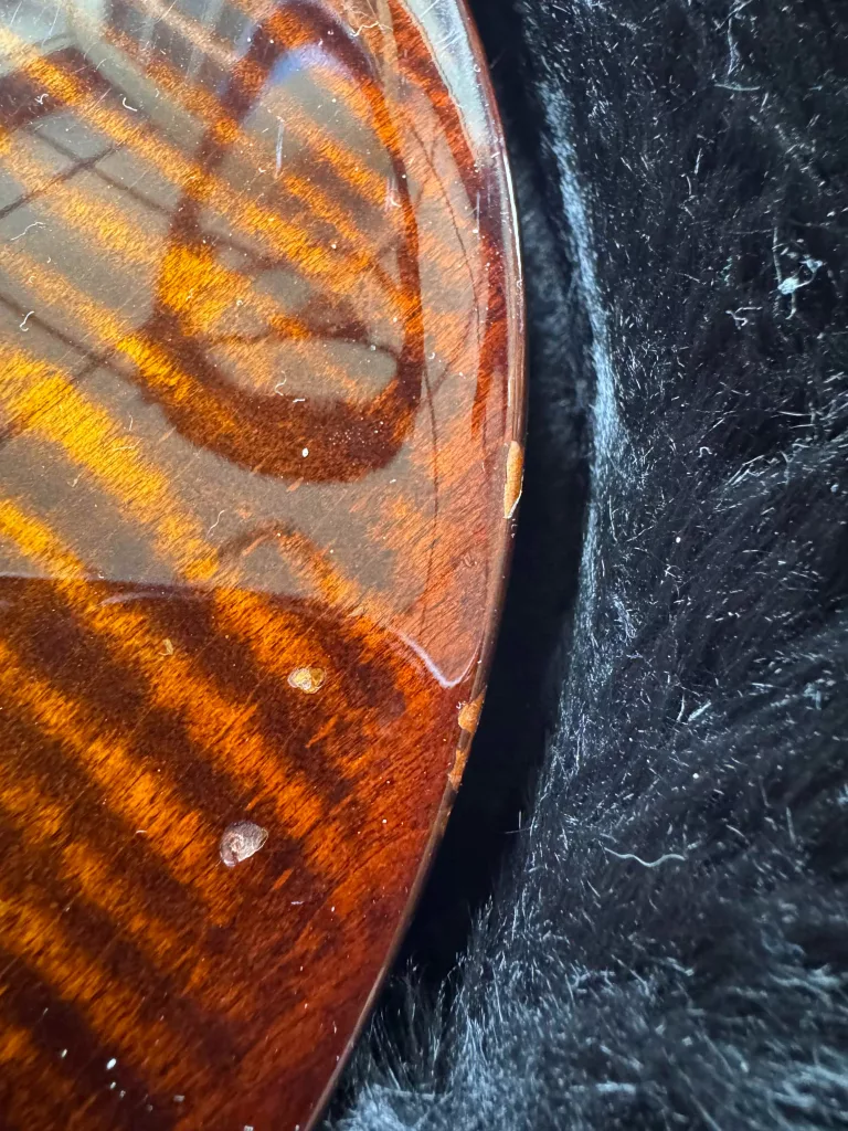 The figuring in the maple top, those warm rolling flames, reminds me of Molly’s brindle coat when she’s sitting with her back turned. That same curve. That same quiet presence.