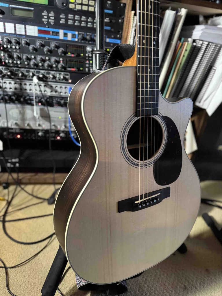 But, to show her how much better Taylors sounded, I grabbed a Martin GPC-X2E in ziricote, expecting the usual stiff, thin “bluegrass box” tone I’d always associated with Martins.